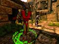 Chaotic: Shadow Warriors features two different styles of gameplay. For a good portion of the game, the player will be playing a platformer. Tom will run through the different environments in Perim and perform fetch quests for some creatures that he meets. Some quests include scanning for DNA samples, gathering information from lookout spires or obtaining recon photos for an invasion, but all of them require you to go to the given location and use your special scanner. You have gates that will hinder your progress through the lands, but the puzzles are simple to solve and don't require much footwork.