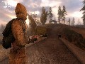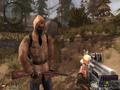 One of the benefits of your military background for your mission is that you start the game equipped with an AK-47, a sidearm, and a meager amount of ammunition and supplies. Of course, the AK is a rather poor weapon, but it still gives you a running start because it's far better than the basic pistol with which you usually start in other games of the series. You are by no means a powerful force capable of dominating the Zone's dangers right off the bat, as mercenaries and bandits can often have far better weapons and armor, and the creatures of the Zone are quite resilient this time around.