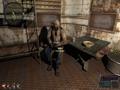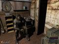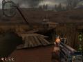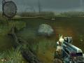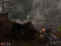 You start the game in an almost completely dried-up lake bed that is filled with the hulls of beached ships, one of which serves as the first form of civilization that you can take refuge in and do some trading. This "town" is filled with merchants such as standard traders who will buy goodies that you bring back from the Zone, doctors who will heal you or remove your radiation level, and weapon upgrade and creation craftsmen. These places also function as a shelter from the deadly emissions that fry any living thing in the Zone, and they also provide a place to sleep so that you can skip ahead to a specific time of day. Don't want to make a long walk at night? Take a rest for a few hours until dawn.