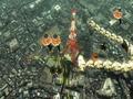 The deadliest units of all are usually the leader units. These units are large and often take up most of the screen, and they can withstand bullets with ease. They're also powerful attackers and can launch swarms of bullets, tentacles or other weapons, forcing you to dodge or be destroyed. The leaders are actually the most interesting units, and for good reason. While they are usually dangerous, every so often, they'll go into an attack pattern that's deadly but easily dodged. If you back up, you'll generally keep yourself outside of their range. The only problem is that this puts them outside of your attack range as well. If you want to easily avoid their attacks, you can't damage them until it is over, wasting precious time. Each enemy has holes in their attack patterns that you can exploit to continue damaging the unit even when they're going all out with their attacks. The problem is that this puts you at much greater risk of dying. Getting caught in one of these swarms is almost instant death, turning the game into a pseudo-Gradius, where you are a moment from death at all times.