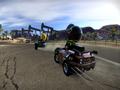 In addition to boosting, the gauge can be used for offensive and defensive purposes. You can spend some of the gauge to activate a special shield that allows you to block weapons at the press of a button. This "costs" a fair amount of your boost gauge but can protect you from danger. You can also use the right analog stick to sideswipe an opposing car, which is a valuable attack that can be used at any time but also costs some boost. This adds a layer of skill that games like Mario Kart lack, as you're no longer completely at the mercy of weapons. A skilled player will be able to boost, shield and sideswipe his way through opponents, hopefully alleviating some of the "Blue Shell" problems that plague Mario Kart.