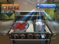 The controls are where the game shines brightly. Unlike the other cooking games, this one requires both the Nunchuk and the Wii Remote to function properly. However, the Nunchuk is really used to do two things: confirm menu choices and speed up time. The confirmation choice seems a bit gratuitous at first, but considering how fast and frantic things can get with the time constantly running against you, it actually becomes a welcome feature. The time factor also makes the speed button a good addition since the game tends to cook everything in real time. If it weren't for that button, cooking dishes like lasagna would become unbearable. Aside from that, the Wii Remote movements are more accurate than one would expect. Every movement, from chopping to stirring to pouring, is accurately done so exaggerated movements aren't necessary. It might seem like cheating to only have minimal movements necessary to do things like cracking eggs and stirring pots, but the controls are accurate enough that you won't make as many mistakes as you would in other cooking titles.