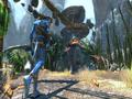 While I did find some surprises in this licensed game that I enjoyed, I can't help that feel that Avatar: The Game could have used a bit more polish prior to release. Visually, it stands up well to other action/adventure titles for the Wii, propelled ahead a bit by the lush visuals and vibrant colors in the alien world of Pandora. Things get a tad dark at times, but that can be adjusted by fiddling around with the brightness settings. The third-person camera view tracks your character well enough and is adjustable, so I didn't have too many issues with it. I didn't care for the default angle when I'd draw my bow; it tends to zoom in but doesn't auto-lock on your intended target, so you need to do some tracking after you aim. The camera becomes a bit of a mess when you introduce a second player — mostly for the scripted attacks, like the stealth segments — so while the idea of drop-in and drop-out co-op is definitely a plus, the overall execution could have used a little more work.