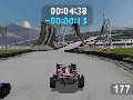 We'll start off with the visuals, which are surprisingly effective on the small screen. Trackmania DS doesn't eschew the 3-D visuals of the PC title for something in the 2-D realm. Instead, it does a pretty accurate job of porting things over, with a pretty incredible job of capturing the draw distance needed to accurately portray the over-the-top tracks for which the game is already known. The cars, while limited in overall count, are well-represented too, and although things look a bit pixelated at times, the game animates well and the frame rate remains high throughout, both important factors in keeping your racing experience nice and smooth.