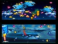 Graphically, Big Bang Mini is pretty simple, with your ship consisting of a geometric shape that's a bit reminiscent of Geometry Wars, but the enemy designs are all pretty solid and well-designed for each location. The game is super colorful, as you might expect from something designed around the concept of using fireworks as weapons, and the later stages will toss so many enemies and projectiles at you that it can be difficult to focus on the task at hand instead of sitting back and watching all of the pretty colors pop up on both DS screens.