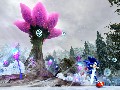 Sonic and the Black Knight makes no pretensions about having a deep story. Sonic's adventure begins when a young woman named Merlina, granddaughter of the famous magician, summons him to Camelot. Like Sonic and the Secret Rings, Sonic finds himself within the pages of a storybook, in this case the legend of King Arthur. The king has gone a little batty and made a deal with the underworld, selling his soul in exchange for immortality. That's bad enough, but in this tale, Arthur hasn't yet lost the sheath of Excalibur, and that means he can't be harmed in battle. It's up to Sonic to find a way to break through Excalibur's protection and defeat the dark king. Fortunately for him, Merlina provides him with the talking magical sword Caliburn, the same sword that Arthur drew from the stone. (Contrary to popular belief, Excalibur was not the sword in the stone but merely a gift from the Lady of the Lake.) Caliburn is snarky and pompous, but he's also Sonic's only hope of becoming skilled enough to defeat the legendary king. It's a simple plot, but it works very well. It's straightforward and occasionally funny, while avoiding the overdramatic goofiness of Sonic the Hedgehog 2006 or the aggravating sidekicks like Sonic Unleashed's Chip. There is even a fairly amusing plot twist midway through the game. It won't be enough to retain an older gamer's attention, but it's great for the younger generation and avoids any pitfalls that would turn off Sonic's fan base.