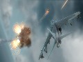 Flying with the control pad is made easy, thanks to a simplified control scheme, and players who have the Ace Combat 6 flightstick will be able to use that instead. Tutorials lead potential pilots through the basics, and they can select between a default arcade control setup that simplifies the flight mechanics or the "expert" mode for flight-sim vets who are used to banking and turning their planes in the more traditional sense. There are also several camera views that can be toggled between, such as in-cockpit (with or without instrumentation), or a third-person chase camera from behind.