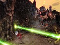 The graphics in Monsters vs. Aliens, while the single weakest facet of the title, are — here we go again — competent. This is a problem, however, in a game derived from a CGI-animated movie. The specific problem in translating animated movies to the video game screen is that while no seasoned gamer really expects the likes of Gears of War 2 or Killzone 2 to look completely photorealistic, we sometimes subconsciously expect game developers can pull off a fetching copy of an animated film. A lot of casual gamers, targeted by games like Monsters vs. Aliens, certainly think the developers can meet that standard. Frankly, it's not true. We're getting closer, but it's not there yet. Yet even this knowledge does little to dampen expectations. Although these game characters look like the movie characters, and the environments are reminiscent of the movie environments, Monsters vs. Aliens' graphics were never fantastic for a game; for a movie, they fall way short. But it's not an ugly game by any means, and there few graphical glitches or technical issues. Still, Monsters vs. Aliens is set up for disappointment in the visuals department.