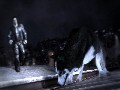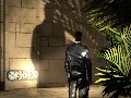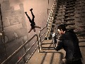 As in the past games, Jack is accompanied by his K-9 dog, Shadow. Shadow's role in the larger game has yet to be revealed, but you can still get him to devour a criminal's entire trachea, so the important things are present and accounted for. One late stage features Shadow as a playable character, defending a wounded Jack from a kill team sent to finish him off. Since Shadow's a dog, the stage plays out in dull monochrome, with enemies lit up from afar to represent Shadow's keen sense of smell. When you get up to an enemy, Shadow knocks him down, and then jumps on top and bites until the individual stops moving.