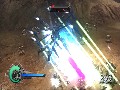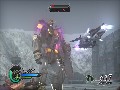 That's the only way to go about it, too: Kill off a lot of the juniors, then face down a mini-boss or a maxi-boss, who's just as stale as the regulars but hardier. Field Defense Commanders are easy to find and eliminate; you grow navigational arrows off your character, pointing you right at them. Maxi-bosses are typically huge and therefore easy to find. (Maxi-bosses, however, do often feature a gimmick to get at them, making it sometimes difficult and frustrating to beat them in a fair fight.) Mini-bosses can be the worst because they're tough to find; they blend in with the enemy mecha minions, until you've substantially beaten them down so that they morph into Defense Commanders for the local field. Only then are you rewarded with navigational arrows pointing you to the bad guy. Until then, you're stuck swiveling your field of view, hunting for them, hoping they don't manage to get in front of you in time to unleash a particularly damaging attack. It's a convoluted play mechanic.
