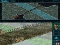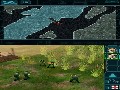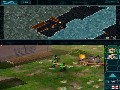 The top screen displays the map and shows your group's positions (yellow icons), nearby enemy positions (red icons), your objective (blue icon) and vehicles (green icons). You have limited visibility because of the top-down perspective, and you can only see the area that appears on the touch-screen, so you're often being bombarded by off-screen enemy fire. To slightly remedy this, you have to rely on the top screen to see where enemies are in relation to you. Environmental features, such as trees and building structures, also get in the way of combat because you can't rotate the camera to see who or what is firing at you.