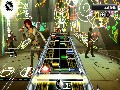 The graphics are about on par with the PS2 version of the game. The character models don't sport much detail, but they look good on-screen. The same can be said of the various costumes, especially the ones that look like they could be elaborate on the home console iteration. The backgrounds look fine and are a good mix between old and new venues. The game is missing a few things, though, notably the crowd and the special effects. Throughout the song, you'll always see the band members, but you'll never see a single audience member even though you can always hear them out there. The special effects, such as black-and-white filtering and mirrored filtering, are absent as well. While it would prove to be a big distraction if they were there, Rock Band fans will miss their presence. Finally, the performers aren't exactly dynamic. Unlike other versions of the game, the band seems to have its own set of animations that are independent of your performance. You can miss a note, for example, and still see the drummer or guitarist performing normally as if nothing had happened.