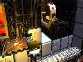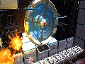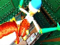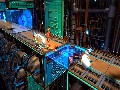 'Splosion Man is really a charming game to watch. The main character is brightly animated, with a variety of cute or hilarious animations that really give him a very charming air. It's hard not to laugh when you start running down a hallway, only for 'Splosion Man to hold his arms outward and make airplane noises. Almost everything in the game is instantly identifiable at a glance, making it easy to adapt to the quickly changing levels. The 2.5-D level design is put to great effect, with the camera twisting and turning to give you a better view of certain situations, or zooming in and out when the game calls for it.