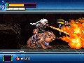 The platforming segments are unremarkable, with every generic hazard and rather overzealous collision detection. Do not get within a half-screen of any spikes if you are going to jump, or you will fall a ludicrously long distance. It's also advised that you shouldn't fall a ludicrously long distance because if you do and you're not in a hit animation, you will land with enough force to shake the screen and freeze your character for many seconds. I was pretty sure the game couldn't get more annoying than the platforming sections, but I was proven wrong.