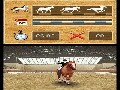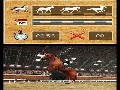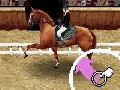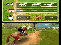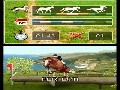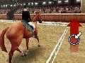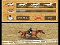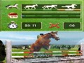 The meat of the game comes from the training and events that you can participate in. Training almost takes on the role of licenses in the Gran Turismo series, and you must complete a certain number of training options before unlocking Amateur, Veteran and other event levels. Training is basically the in-game tutorial for all the different moves your horse can perform, and this is where my slightly odd comparison to Elite Beat Agents comes into play. When you begin a training or competition session, you see an angled view of your horse and rider, and you can tap on the horse's rear flank to get it moving by using the stylus on the touch-screen. A couple of more taps will speed it up to a run, but depending on what you're aiming for, a slower course of action might be key.