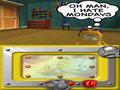 The stages are set in seven different areas, starting out in Garfield's house and featuring the usual cast, notably Jon and Odie. A lot of the action is controlled via the touch-screen, but there are optional face buttons for just about every movement in the game, and each stage is a mixture of different play types, which contribute to the gameplay's overall mini-game feel. One stage has you gathering breakfast items that Jon tosses behind him toward Garfield, and you must move Garfield back and forth in the foreground to catch them. It's a pretty simple game of catch, and aside from the occasional plate that you'll want to miss, it's definitely easy. Along with that, it's really boring and ends up setting the tone for the rest of the game, regardless of how differently each stage plays out.