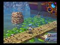 Whether during an assignments or free time, most of your time in the game is going to be spent in the various dungeons that litter the island. These dungeons are home to terrible monsters and rare alchemy ingredients, which is the reason you'll have to venture inside. Most of the dungeons are extremely linear and straightforward, so you'll move from point A to point B, and there's little exploring to be done. There are a few dungeons with gimmicks, such as an underwater dungeon where you can swim around, but these are very few and far between, and they feel disconnected from the story. Like the previous Mana Khemia, monsters wander around as shapeless blobs, colored either red or blue. If you come in contact with a monster, a Quick Time Event button prompt will appear. If you press it correctly, you'll gain an advantage on the enemies, but if you fail, they get to attack first. Blue-colored enemies will be instantly destroyed by a successful button press, allowing you to collect a prize for defeating them without even fighting.