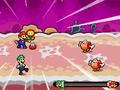 One of the main complaints of the series over the years has been that the combat can get pretty boring after a while. After all, once you learn an enemy's attack patterns, blocking or countering becomes essentially automatic and the game can fall into the level-grind pitfalls that plague other titles. Thankfully, Alpha Dream has thrown in a few new combat wrinkles to spice up things a bit. First up is the occasional appearance of what I like to call "Giga Bowser," where the Koopa King swells into the size of a skyscraper for some truly epic boss battles. These fights require players to hold the DS sideways, and the combat strategies and attacks are so fundamentally different from the rest of the game that they provide a great change of pace. Furthermore, these encounters are spaced out throughout the game perfectly, appearing regularly enough that you feel comfortable with the mechanics while still managing to be rare enough that you never feel like it's becoming an overplayed gimmick meant to artificially add variety.
