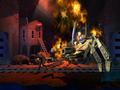 Sound was a strong point for the first game, and while it isn't as pronounced here, it still manages to make a positive impact on the title. The sound effects are just as good as the last title, and even though this is now a side-scrolling game, the title still employs Dolby Digital sound. The richness of the sound doesn't make an impact until you get bodies and body parts flying at your screen, but once it does, it makes the experience a better one. The music is nice and bombastic and filled with new tunes. Unlike the last game, it doesn't feel like musical scores were repeating over and over again, but it also doesn't feel like they're incorporating old and new styles of music either. There are voices in the game but not for the cut scenes. Interestingly enough, the voice actors for both Matt Hazard and Dexter Dare are different, but they do a good job of sounding like the originals. The quips they say will repeat a bit, especially bits about low health meters and continuing, but they remain funny even if the one-liners toward bosses are meant to be cheesy.