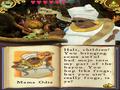 A good portion of the requests involves the cooking mini-game, wherein they'll choose a recipe they want cooked, and you need to locate the three ingredients for that particular recipe. These are usually scattered all over the level, so you need to search it top to bottom to find all three. Once that's done, you need to locate the boiling pot within the level, which in turn allows you to initiate the cooking mini-game. For this, the touch-screen shows a close-up view of the boiling pot, with two meters. The one on the right signifies how hot the pot is getting, and if you let it fill up, then you lose the mini-game. To keep the pot cool, you need to blow into the mic now and then to lower the meter. The left gauge shows how much progress you've made into cooking a particular dish; once it fills up, you win the mini-game, and the recipe is finished. To play, you simply make a circle within the pot, depending on the direction of the arrow prompt. Also, you'll get cups of spices to add to the pot on occasion, which is simply done by dragging the cup over to the pot with the stylus. It's pretty simple and really difficult to mess up.