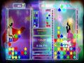 The main hook is the game's reliance on rhythm. Matches that have been made on the board will not count as points and disappear from the playfield unless the final piece of the patch is counted as a beat drop. To make it count as a beat drop, the piece has to fall in tune to the rhythm of the song. According to the beat guide on the side of the playfield, pieces dropped when the meter is in the red count as beat drops, while pieces dropped when the meter is blue don't count. Successful beat drops not only clear the field but make subsequent beat drops earn more points, up to 20 times the original value. The drawback is that the red zone shrinks with more successful drops, making the process of keeping a high drop zone meter much more difficult.