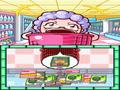 The brand new shopping mode, titled — you guessed it! — Let's Shop, is the newest and biggest addition to the series. It's also a little bit of a throwaway experience in that it doesn't really impact things in a serious way; it just serves as a slightly new collection of mini-game events that rarely involve any cooking. Basically, you'll be presented with a top-down view of aisles in a supermarket, and you'll need to guide you character through the aisles to pick up ingredients that Cooking Mama has requested. Along the way, you need to dodge other customers and workers, but if you run into them, you'll initiate a mini-game event that you're required to finish. You have a set number of hearts displayed on-screen, and if you screw up an event, you'll lose a heart. Lose all of your hearts, and you'll be kicked out of the store and forced to start over. The problem with this mode is that the chance of getting a mini-game seems to be kind of random. I'd often run into someone and instantly have a heart taken away, so I couldn't figure out which events would trigger a mini-game and which wouldn't. There are only a handful of mini-games available, so you'll find yourself repeating the same ones over and over within a play session or two. I like the idea of the mode, but it is definitely lacking in fun and content.