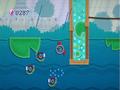 To the game's benefit, the yarn and fabric aesthetic is used constantly. You can pull a loose string to "pull" the background fabric so that a platform comes closer. You can jump into a hole in a tree to "slide" behind the fabric, complete with a cute Kirby-shaped bulge in the background. Zippers can be pulled to reveal secrets, loose threads of yarn unraveled, and various other cute gimmicks. Everything feels very sensible, which is an odd thing to say about a world made of felt and yarn. Despite my earlier complaints about some things not being explained well enough, most of the game is designed around instinctive knowledge. A young child can usually figure out the rules of the world because they're somewhat based in reality.