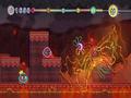 Hidden patches in boss stages require you to defeat the bosses while taking minimal damage and occasionally figuring out a trick to make the boss drop extra beads. This is the hardest part of the game, but it's not actually a hard thing to do, even for casual players. It encourages players to step up their game, but not to an unreasonable degree. The patches you earn from bosses can unlock new levels too, which is certainly worth a player's time. This may sound overly forgiving, but the game actually works out really well. The title is clearly designed to be accessible to casual or younger players, as opposed to those who felt that Ninja Gaiden was too easy. It manages to hit a sweet spot of being forgiving and encouraging better play, without actually punishing new or casual players with frustration.