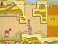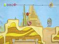Epic Yarn is an incredibly easy game, as the majority of enemies are not very aggressive. They wander around and occasionally make a halfhearted attempt to attack Kirby, and some of them can't even harm him. There are a few aggressive enemies, including the bosses, but they don't actually threaten you because you can't die in the game. Instead, taking damage causes you to lose a chunk of the beads you've collected throughout the stage. When you take damage, the beads burst out of Kirby — not unlike the rings in Sonic the Hedgehog.You have a grace period in which to re-collect the beads before they vanish, and if you do, you'll survive, having only lost a small fraction of your beads. If not, well … the only punishment is finishing the stage with fewer beads. Even if you lose every bead you've ever collected, you won't die if you're damaged. Falling off a cliff won't kill Kirby. An adorable yarn angel swoops down and saves him, although Kirby begins losing beads rapidly while he's airborne.