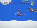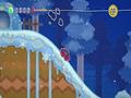 Kirby's Epic Yarn is one of the best-looking games on the Wii. The graphics are good, but what really shines is the amazing art design. The world of Epic Yarn is filled to the brim with detail and style. As weird as it sounds, it feels like a world of fabrics and yarns has come to life. Enemies and objects are made of yarn that can be unraveled or bundled into new shapes. Instead of snow and dirt, you have giant tufts of cotton. Even the various beads you have to collect are often intelligently melded into the background. One stage has large pine trees, which are covered with beads to resemble Christmas trees, complete with a high-scoring star at the top.