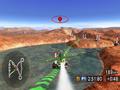 Air race is the first sport, and it is one of the more interesting ones. It is a timed race where you pilot your airplane through a number of gates in the fastest possible time. For added challenge, the plane must have a specific orientation as it passes through the gate. For example, the plane must pass through one gate while perfectly level, but it must pass through another gate while completely turned on its side. It controls rather well as you hold the remote normally and tilt and twist it to change altitude and direction. With the various courses, Air race is a fun diversion that is worth revisiting from time to time.