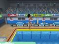 Springboard diving is interesting. This one is a scoring-based contest similar to what you'd see in the summer Olympics, but it's been broken up into three sections. The first has you timing your Wiimote swing upward in order to get the most height out of your jump. The second has you following on-screen arrows to swing your Wiimote in the desired direction for a more precise dive, and the final section has you timing your Wiimote swing downward in order to make the smallest possible splash when entering the water. The inclusion of the sport isn't bad, but your lack of selection is. You're never given the chance to pick out which dive you're going to perform; you must rely on the assigned dive and hope for the best. Having the ability to choose which dive you'll do and being graded on that would have made this sport more enjoyable.
