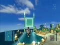 The second gameplay mode is racing, which plays out similarly to some of the racing events in Diddy Kong Racing for the Nintendo 64. Like that game, you'll be flying through the air in checkpoint-designated laps. Passing each checkpoint gives you a temporary speed boost. Like dogfighting, your weapons are still intact, minus the missiles, so eliminating the competition is highly encouraged. Depending on your finishing position, you'll also receive more characters and weapon parts at the end of the race.