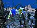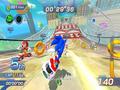 The sound is good in some places and pretty bad in others. The sound effects are classic Sonic, so the jumping and ring capture sounds remain the same. The music is upbeat material that ranges from light platforming-like fare to harder techno beats, but all of them feel very appropriate for a futuristic-style racing game. There's also the requisite vocal theme song, and while the lyrics remain cheesy, the overall beat makes it a solid theme song for the Sonic series.