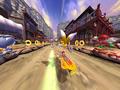 The single-player game offers a standard assortment of modes that's in almost every modern racing title. Free Race has you doing standard races of three laps (unless the lap number is changed in the game options) on any track using any character you've unlocked, including your Xbox 360 Avatar. Time Trials has you doing the same type of race but without any competitors, and the goal is to get the fastest possible time on a track. The real meat of the game is in Grand Prix, where players get to view the story through the eyes of any of the four racing teams, two of which must be unlocked. Oddly enough, the mode doesn't feature too many standard races because it features specialty races instead. You'll be punching down objects, collecting a certain number of rings, or getting a certain number of trick points before you reach the end of the course. You'll also engage in a few one-on-one races before the mode is done. The mode is quite lengthy, so you should be able to squeeze a good amount of gameplay from it.