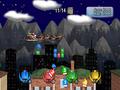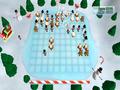 The table contains the formal mini-games playable for up to four players. Deck The Halls is a match-three puzzle game where players have to place the selected object in a way that connects three of the same object; the matched grouping then disappears from the board. Rounds are won when the meter at the bottom is full of completed matches, but gameplay ends once an object goes beyond the bottom of the board. Hot Chocolate has you making cups of hot chocolate to match the requests of the elves ordering them. The game is timed, and gameplay ends after a certain number of mistakes are made or time runs out several times. Candy Cane Lanes is a simple game of bowling, which all Wii gamers should be familiar with by now. The only difference here is that the bowling pins are replaced by elves who seem to enjoy being hit by a striped sphere that's traveling at tremendous speeds. Reindeer Games has you controlling a reindeer as he grabs presents, which propel him higher into the stratosphere; gameplay ends once he lands on the ground. Present Catch has you using a trampoline to bounce flying presents into Santa's toy sack. Finally, Santa's Sleigh is split into two different activities, with the first part having you grab presents in the air while the second portion makes you deliver the correct presents to the correct houses.
