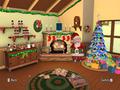 As with most games on the system, this title is a mini-game compilation with a Christmas theme. There are a little over 10 different activities to partake in. From the main hearth, the radio can tune in to some popular Christmas songs and give you the opportunity to sing along with the on-screen lyrics. You can interact with the fireplace by building a larger fire with the help of yule logs or roasting marshmallows to a golden brown, though they somehow never burn. If you have it, you can also throw powder into the fire to change the flame colors into more festive ones. The tree in the corner can be decorated with as many strands of tinsel, bulbs and lights as you wish. On the floor, you have the opportunity to write letters to Santa, though the writing isn't really free-form, as you simply enter words into preset phrases. You also have the opportunity to play a "Where's Waldo?" style game where you have to find any number of objects presented in the list. The most important object here would be the advent calendar. Covering the first 25 days of December, each day unlocks a new object for the game, whether it's new tree decorations, music or powder colors. The calendar follows the clock on the Wii console, and once Christmas ends, everything is locked away until next December.