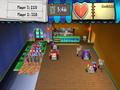 Whereas the computer version is tailor-made for mouse-only control, a couple of changes had to be made. The control scheme remains pretty simple, but there are a couple of additional steps in between. For starters, default movement of Flo is delegated to the left analog stick, so the player takes direct control over her movement. This is changed from the point-and-click setup of the PC, where you would just click on customers, tables or plates of food to control where Flo would go. The right analog stick controls placement of customers, so when you get a group of four red-shirted customers to sit, you need to move them to the appropriate table by using the right stick and ideally matching them up with as many red seats as possible. When you approach customers, orders or tables that need to be bussed, you simply press the A button to activate the desired action.