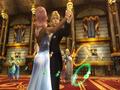 Unsurprisingly, Square Enix has turned out a very good-looking game. The character animation and models are all very well put together, and the art design is top-notch. The Crystal Chronicles world usually felt a bit bland to me, but The Crystal Bearers does a great job of making it feel like a fully realized place, especially in the towns and other busy areas. The frame rate is solid, and I very rarely noticed any hiccups or problems, usually only when Layle was throwing explosives into a crowd of enemies. One especially neat feature is the ability to take a screenshot at any time by pressing the 2 button, whether it's during battle or in the middle of a cut scene. You can then save that screenshot to an SD card, allowing you to save a favorite picture for later viewing.