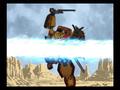 Most of the battles take place on the ground, where your robots walk around in humanoid form. The STARs also have the ability to transform into jets, and this comes into play in two ways. You can use jet form to move to different battlefields. Most fights involve enemies attacking on multiple fronts, so you'll have to split up your units to fight them, and this definitely adds an interesting touch of strategy. Shinjiro's Protect ability works across maps, so you can turn one of your characters into a powerful vanguard. Certain battles also require you to fight foes in the air with the STAR's jet mode. Instead of moving along the ground, you alter your altitude and fly around the target, but the basic controls are functionally unchanged. However, characters have different attack animations and special moves while fighting in jet form, which makes the battles feel very different.