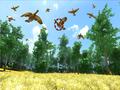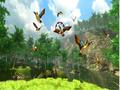 For the most part, the graphics tend to be pretty impressive. Everything is locked at a steady 30 fps, and the movements on the animals are smooth and have no sudden transition issues. The environments look good and sport some nice touches, like moving grass and splashes in the lake when a bird hits the surface. There are no issues in draw distance, another plus when considering that you'll be hunting down animals from afar. As far as the animals are concerned, they look fine from far away, and you won't be mixing up your animal types since they look fairly close to the actual animal you're supposed to shoot. You'll never really be able to get close to any of them before they run away, and fallen animals tend to disappear before you can inspect them closely. On your hound, the texture is blurry, and it almost seems like the animal has no eyes. Barring that flaw, the overall graphics aren't exactly pushing the limitations of the Wii, but they don't embarrass the system, either.