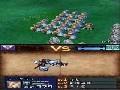 Once you've selected your enemy nation, it's time to get to the actual fight. You can select three generals from your side, as long as you've allocated troops to them. Each general has a specific ability, whether it's attack, defense or magic. In battle, this plays out a bit like rock-paper-scissors. Attack beats magic, magic beats defense, and defense beats attack. Once you've selected your three fighters, you go to the actual battleground. The top screen of the DS represents the fight via 2-D sprite animations. It's a pretty basic display, showing enemy armies clashing against each other, with little soldiers bounding off the screen when they're killed. The bottom screen is where you'll have some control over the action; you'll map out little icons to attack other icons, and then zoom in on these icons to pull off special moves. While this sounds involved, it's really not. The battles are so quick that you have little time to bother with strategy, and really, you barely need to. It also doesn't help that the movement of your troops isn't very precise or timely; they don't respond quickly enough for you to set up anything. The end result is that you're better off hitting the auto-attack option and letting it play out like every other aspect of Spectral Force Genesis — which is to say that you just let the computer do it.