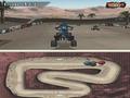 Racing games demand a control scheme that is close to perfect. Unfortunately, the controls are very middle of the road in ATV Quad Kings. This is strictly a touch-screen-less affair; the d-pad handles steering; the face buttons handle acceleration, braking and trick execution; and the shoulder buttons activate the turbo boost and powerslides. What kills the controls is just how loose they are. Tapping left or right on a straightaway is fine, but anytime you take a turn, using the d-pad will ensure that you'll oversteer and hit the closest wall on the turn, resulting in a dead stop since collision with anything other than a fellow ATV rider always results in dead stops. The only way to stop the oversteering from occurring is to always hold the powerslide button while turning, giving you just enough control to make the turns without hitting anything. It's only one flaw, but considering the penalties caused by this, it ends up being a very big problem.