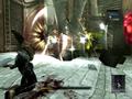 Nier is not a good-looking game, especially for a Square Enix-published title. The character models are extremely dated, and some look almost PS2 quality. The world is poorly textured and filled with the dullest grays and browns. It certainly fits some of the dungeon locations, but it doesn't make them any less unpleasant. It's even worse when the game has something that is clearly expected to be impressive, and it comes off as mediocre instead. Nier performs violent finishing moves on his enemies that are virtually indistinguishable from those seen in Bayonetta, except many, many times uglier. His basic movement animations are quite bad, and Nier's jumping animation is so ridiculous as to be laughable. There's nice variety to the weapons and neat visual flair in some of the dungeons, but that is about the kindest thing to say about the game. On the plus side, there is very nice art design in some locations, even if the visuals can't live up to the idea.