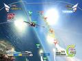 The gameplay objective remains as simple as the original game: kill or be killed. Waves of airplanes speed toward your craft, either from the front or behind, and your job is to shoot them all down. Generally, they'll attack with the usual weaponry, but sometimes, they'll launch missiles in your direction, and you can avoid them with deft flying maneuvers or barrel rolls. Your offensive capabilities are the same as before. You get a machine gun with unlimited ammunition and a limited cache of missiles that replenishes over time (this renewal wasn't in earlier series entries). New to this game is the climax ability, which slows down time and gives you a bigger aiming reticle so your missiles can lock on to more targets. The climax meter is limited but has a fairly decent charge time, so it can be used multiple times per level if needed.