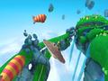 The other positive thing I wanted to point out was the design of the islands. They're pretty fun to fly around if you don't have to do any challenges, with much of the design featuring different paths that weave inside mountains, underground chambers, and through tightly packed corridors of lava, rock, water or other substances. They're very colorful and bright, and while the game isn't a graphical showcase by any means, these areas are really vibrant. If the islands were a little larger and had a better view distance or draw distance, I could have easily spent more time exploring the locations instead of being bogged down by the boring and repetitive challenges that comprise the meat of the gameplay.