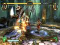 When it comes to the controls, Tournament of Legends takes a somewhat unorthodox approach to the subject. Using the Wii Remote/Nunchuk combination, movement is handled by the analog stick while attacks are done with movements from both the remote and Nunchuk. Vertical and horizontal movements with the remote translate into similar movements for your fighter, while any movement of the Nunchuk will always execute the same secondary attack. The attack motions aren't 1:1, so simply flailing around can give you some decent attacks and combos.