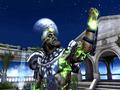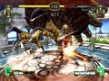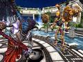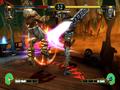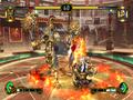 The game doesn't completely crib from Namco's weapon-based fighter, though, as it brings in some fairly unique elements of its own. For one thing, all of the arenas feature an environmental hazard that is randomly triggered. Unless the correct move is performed at a given time, fighters will take damage from the hazard before the fight continues. Players are only eliminated when their energy level has been depleted three times. During that time, the victor can try to regain some of his energy while the fallen fighter fights to quickly refill his energy bar, preventing the victor from being able to regain much, if at all. The biggest change, though, is with the timer. Unlike other games, where the expiration of time results in someone being crowned the winner, the end of the round simply gives both fighters the opportunity to refill their energy bars and repair their armor. This ensures that there will only be one real way to win a fight.