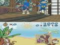 As indicated earlier, this is an on-rails shooter similar to what you see in light-gun games. You'll automatically travel from one section to another, trying to dispatch any of the simians and other creatures before they have a chance to hit you. The locations will vary, but the monkeys will always pose the biggest threat since they often hurl melons and other fruit to deplete your health. You can defend yourself by shooting the fruit, which will often reward you with tokens, which you'll also need to shoot to retrieve. Bananas yield extra lives and replenish any health that may have been lost during combat, and the coconut gun provides you with much stronger ammunition than your default slingshot. There are 10 different levels spread across two sections of the island.