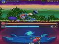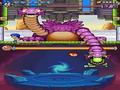 You also have to be cautious of enemies who try to take advantage of this. Certain foes infiltrate your sanctuary and use it against you. During our playthrough, we encountered a nasty monster that shot seeds into the sanctuary. The seeds blossomed into seed-spitting miniplants that attacked us from the bottom screen. Another hid in the sanctuary and tried to grab Ellie, holding her in place with vines until Chomp could rescue her. The only way to stop these monsters is to send Chomp down to fight them, leaving Ellie at risk until he beat the bad guys into submission. Powerful boss characters also exploit the bottom screen. The first boss is a two-headed dragon that moves his vulnerable head between the top and bottom screens. You have to send Chomp to attack him in the bottom screen, while dodging the attacks from the second head in the top screen. Fortunately, Chomp is invincible on the bottom screen, so the only risk is how much time it takes to kill the enemy.